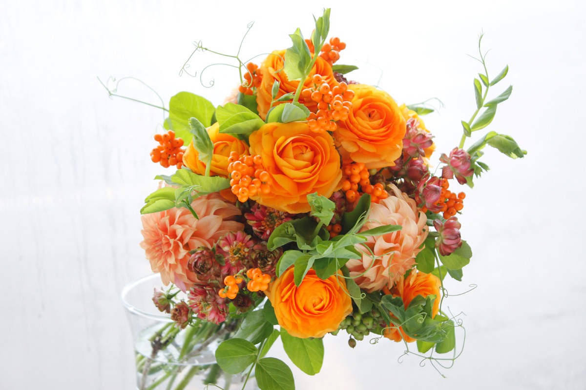 オレンジラナンとダリアのブーケタイプ